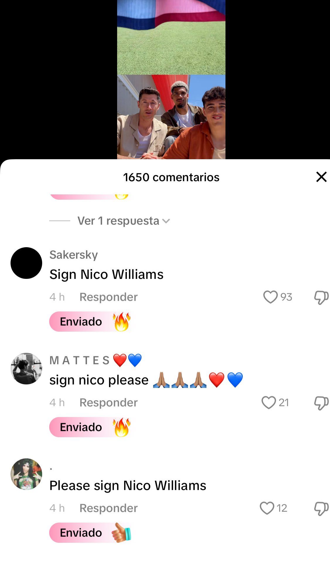 En una de las imágenes de la semana se ha podido observar en TikTok. Algunos seguidores del FC Barcelona le han enviado dinero al club por esta plataforma. Algunos de los comentarios tras las aportaciones eran: «For Nico Williams», «mi aporte para Nico Williams», «Hopefully this is enough for Nico», «Sign Nico Williams», etc.