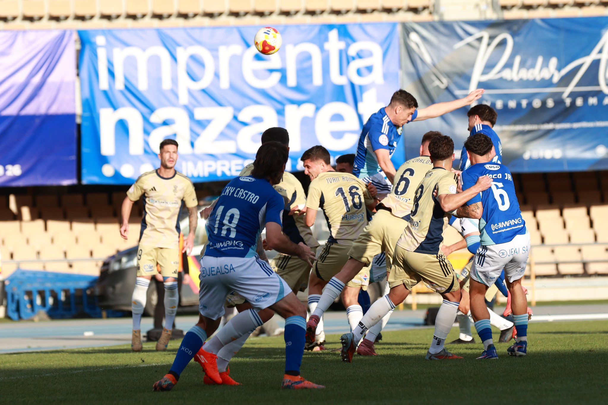 En el minuto 17, un envío envenenado de Ismael Gutiérrez atravesó el área onubense como un puñal. En el segundo palo, libre de marca y con la fe del que sabe que el trono está en juego, apareció Zequi Díaz para empujar el cuero a la red. El rugido de Chapín se escuchó en toda la provincia: el Xerez CD golpeaba primero y ponía contra las cuerdas al equipo de Arzu.