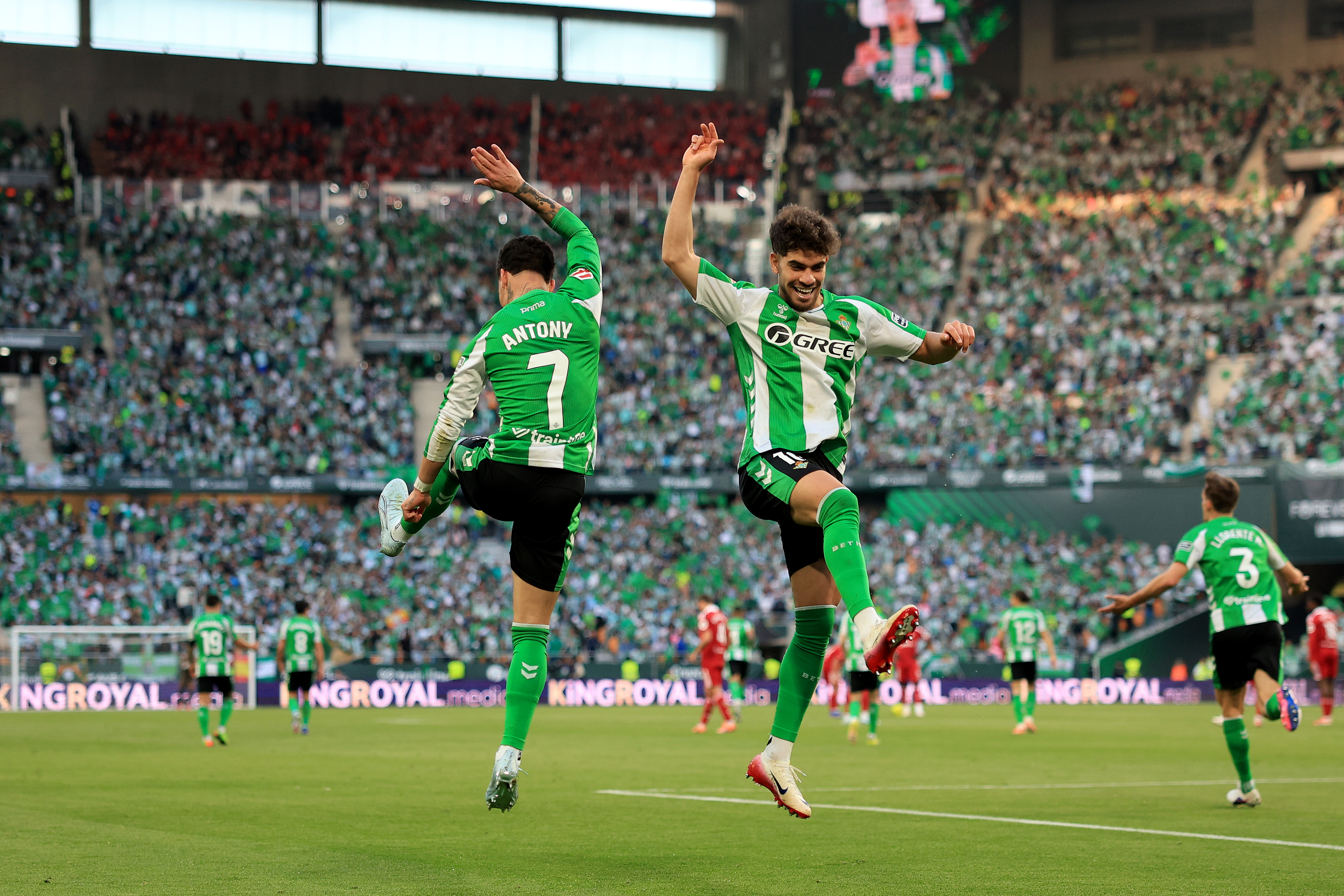 Tras una jugada combinativa, Abde llegaba a línea de fondo y trataba de asistir al Cucho Hernández. El primer remate lo detuvo Vlachodimos, pero el rechace cayó en los pies de Antony, que firmó el gol con una chilena en el área chica. El brasileño celebraba eufórico su primer gol ante el eterno rival de su querido Betis. Tras el gol, el dominio del Betis era manifiesto. Controlaban el balón con tranquilidad, mientras el Sevilla se replegaba en un bloque medio, buscando provocar errores en la salida verdiblanca. Aun así, daba la sensación de que el Betis tenía el partido muy controlado. Llegada la media hora, el Sevilla empezaba a estirarse un poco más, a hacerse con el control del balón y a generar sus primeras ocasiones, aunque sin llegar a poner en verdadero peligro al Betis.